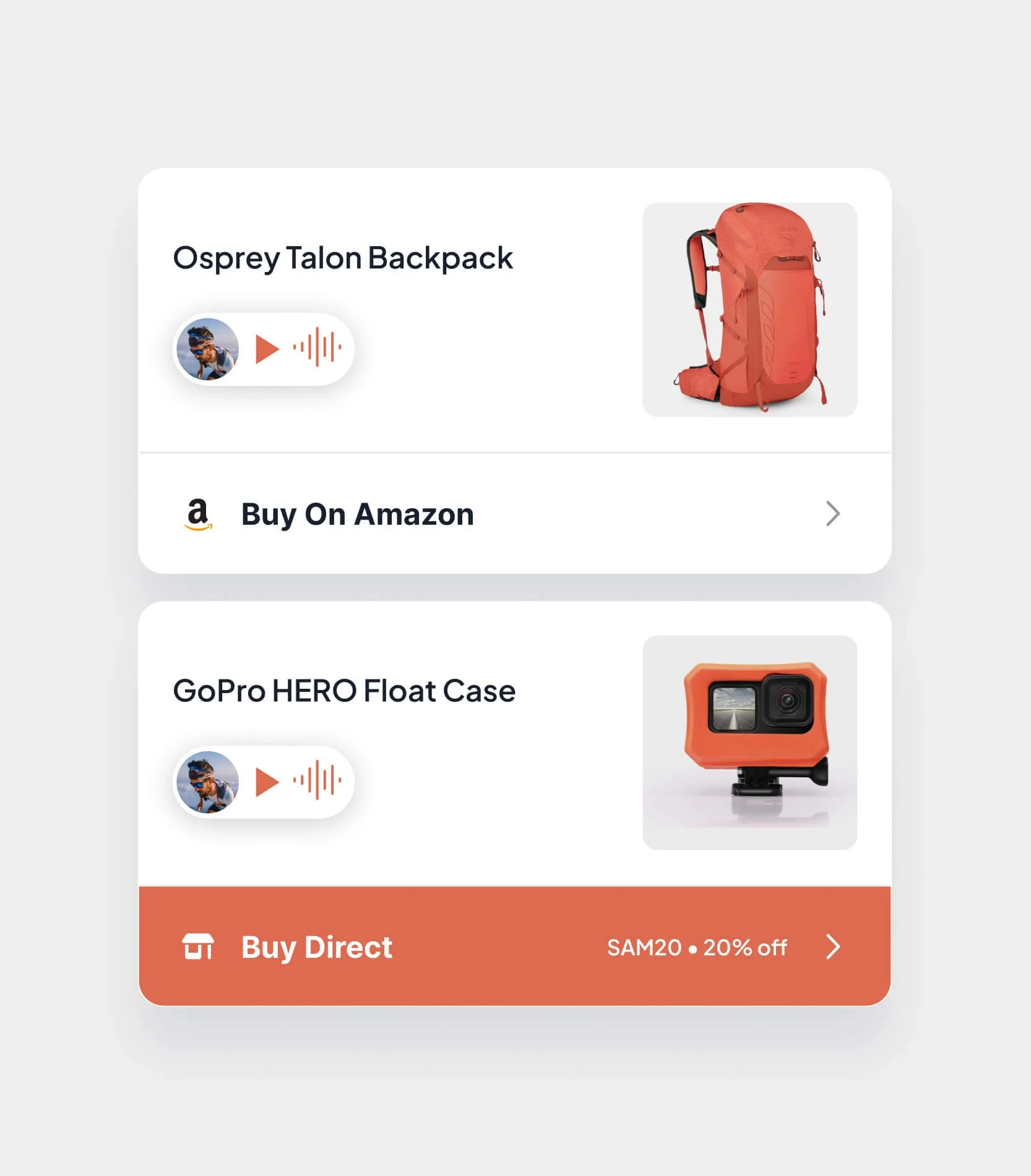 Turn basic affiliate links into dynamic visual links complete with your promo codes and conversion-boosting VoiceTips™ in seconds.